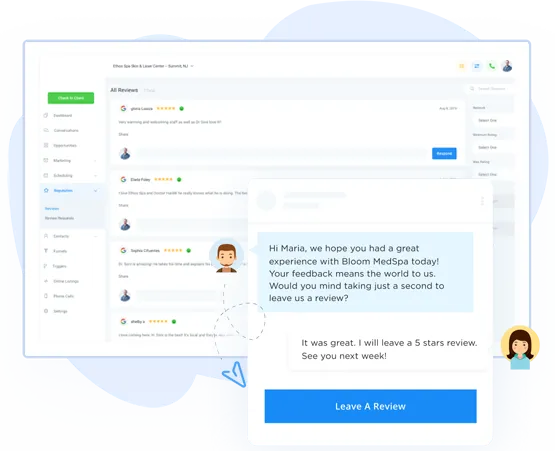 Send review requests via SMS and email with the push of a button. Monitor and reply to new reviews right within the dashboard.